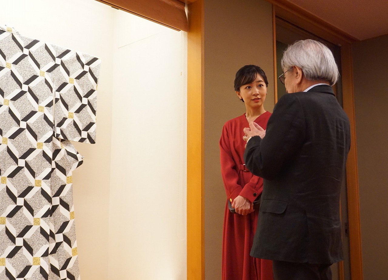 秋篠宮殿下の次女 佳子様(日本工芸会総裁)が第72回日本伝統工芸展京都展の視察に先立ち、 松下真々庵ご視察されました。真々庵では森口邦彦 重要無形文化財「友禅」保持者から作品などの説明を受けられました。